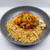 Ingredients: Peri Chicken Thighs, Pilau Rice, Steamed Broccoli, Peri Sauce, Boneless Chicken Thighs, Basmati Rice, Fresh Ginger, Fresh Garlic, Cumin, Salt, Chillis, Olive Oil, Rapeseed Oil, Citric Acid, Black Pepper, Tomato Paste, Birdseye Chillies